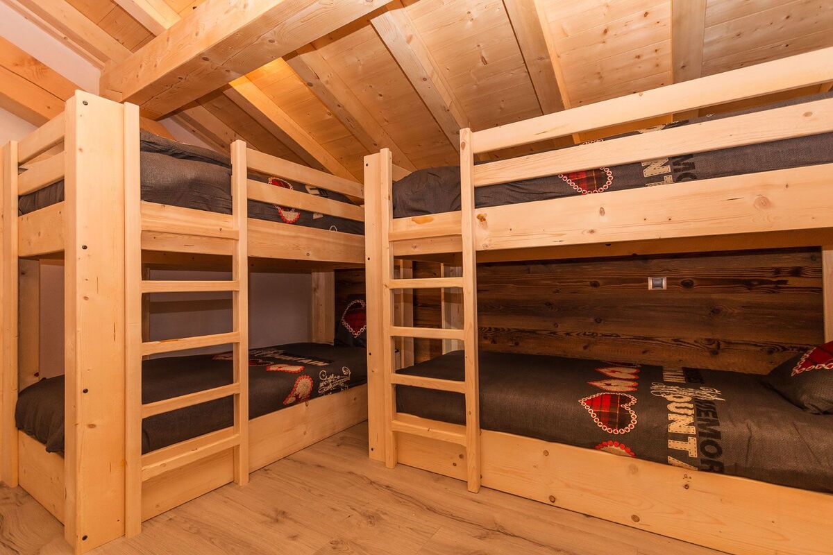 🚿 Le chalet est composé de chambres doubles et de dortoirs de 4 personnes ; certaines chambres ont des salles de bain privées, sinon elles sont partagées avec d’autres chambres.