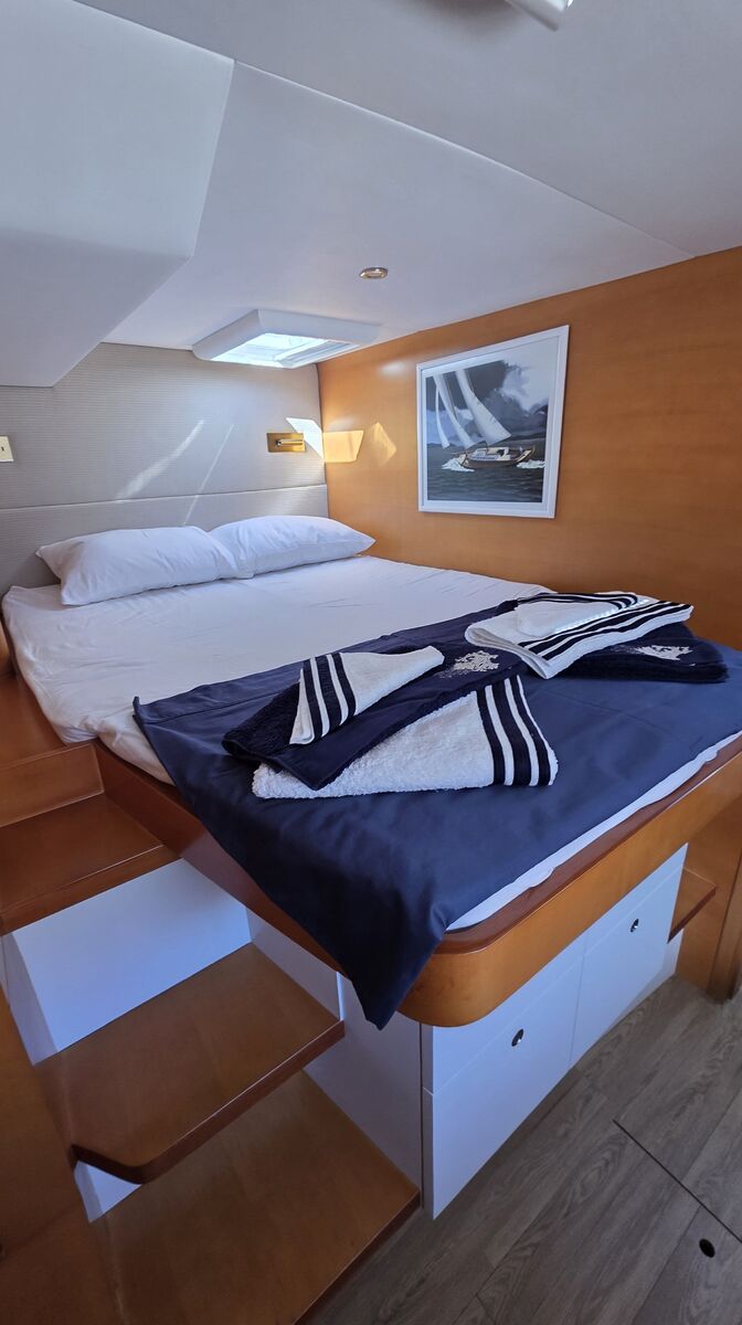 Le catamaran, à la fois confortable et spacieux, offre un cadre parfait pour une croisière en famille. Sa stabilité en mer et ses grands espaces permettent aux enfants de se déplacer en toute sécurité, tandis que les parents profitent pleinement de la semaine.