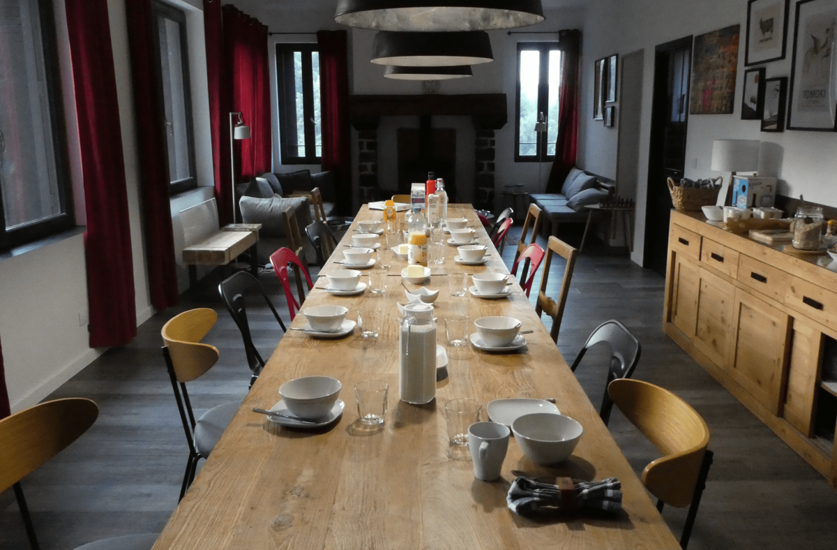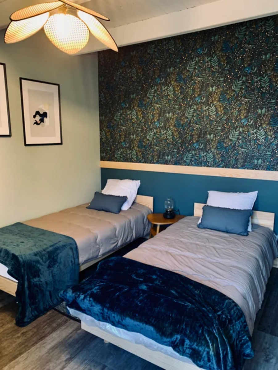 🏡 Ici le gîte dispose de plusieurs chambres doubles et triples, un dortoir de 6 personnes, avec 5 douches et WC sur place.