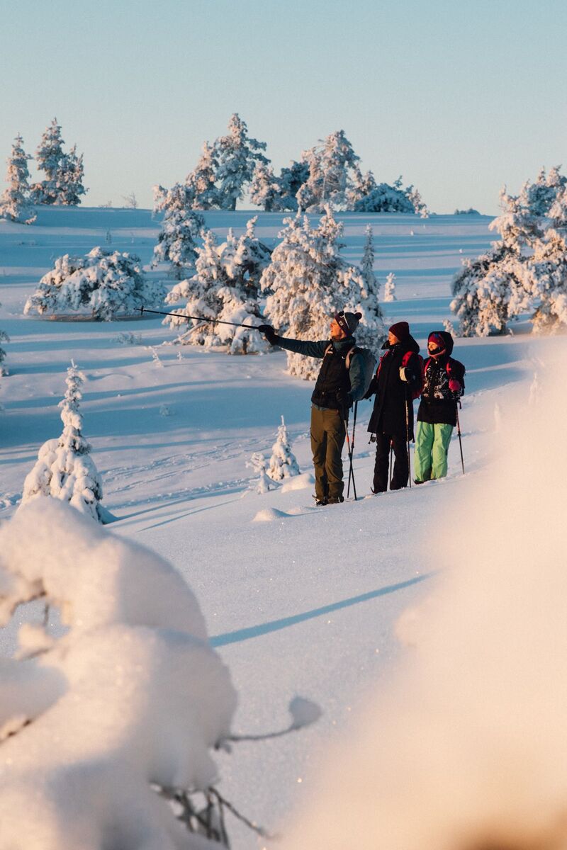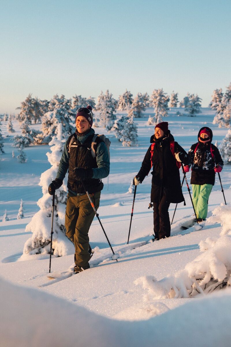 Un cocktail d’activités du Grand Nord : ski de fond, raquettes, ski pulka, saunas traditionnels, bains glacés, nuit en cabane de trappeur, chasse aux aurores boréales etc...