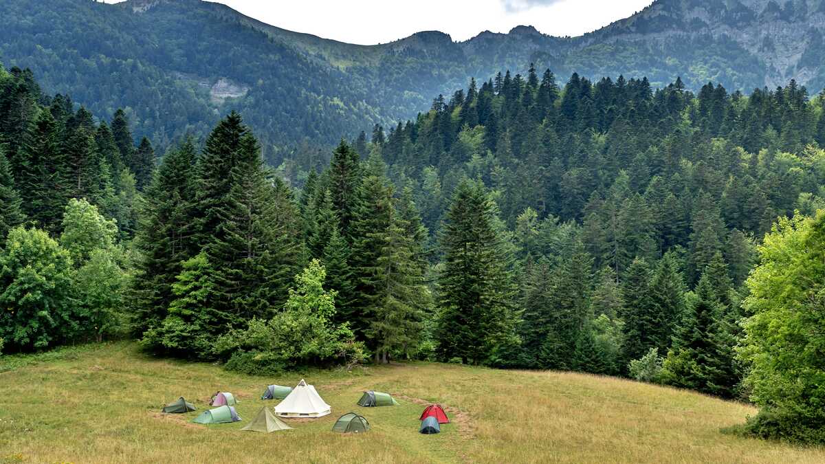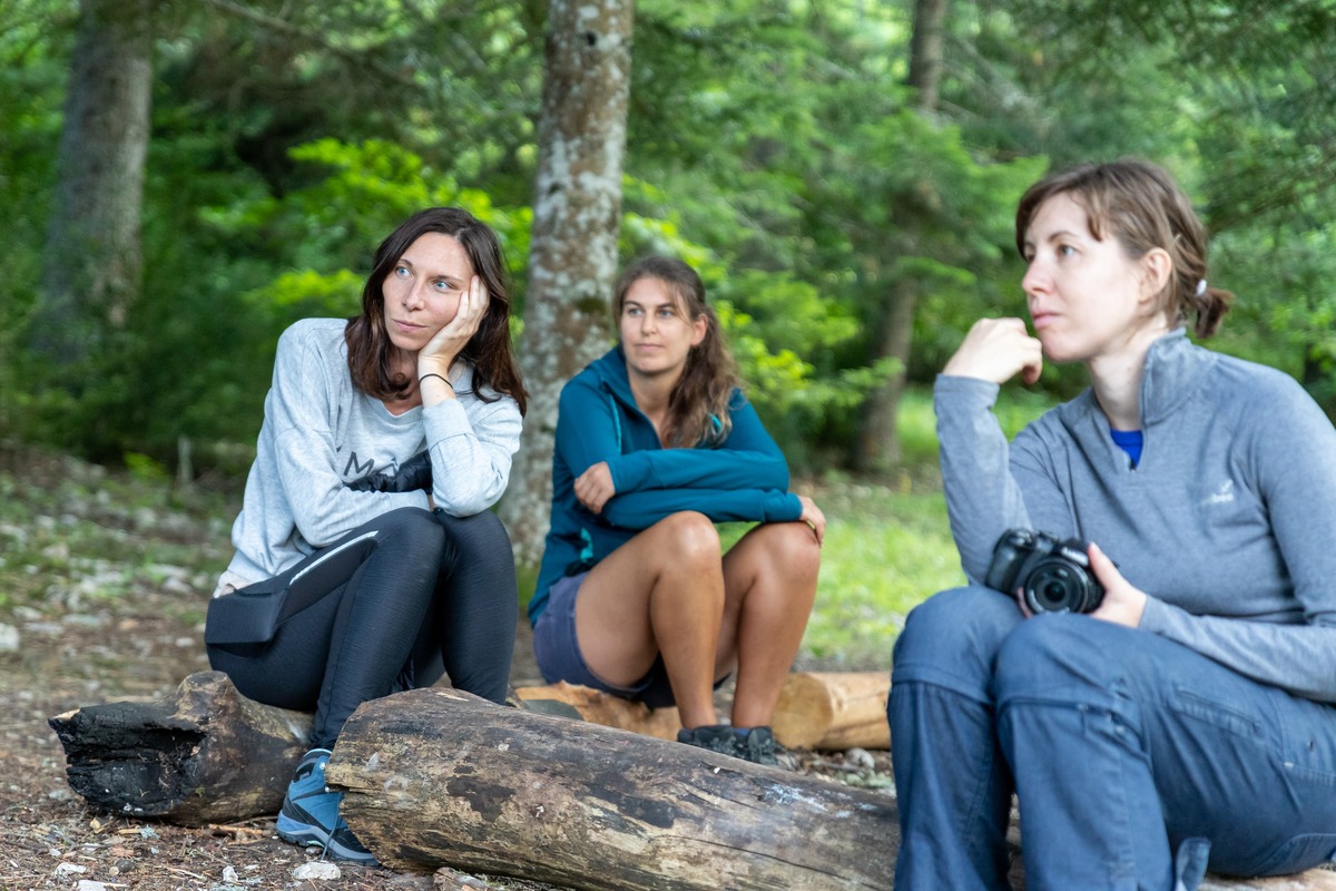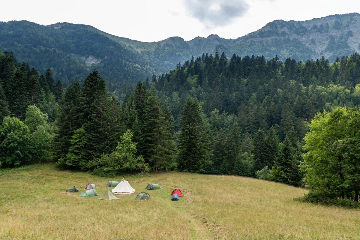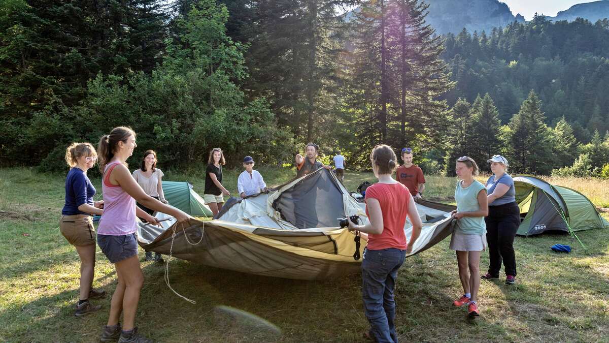 Pendant l’été (avril à octobre), le camp de base se situe dans une clairière en mode bivouac
