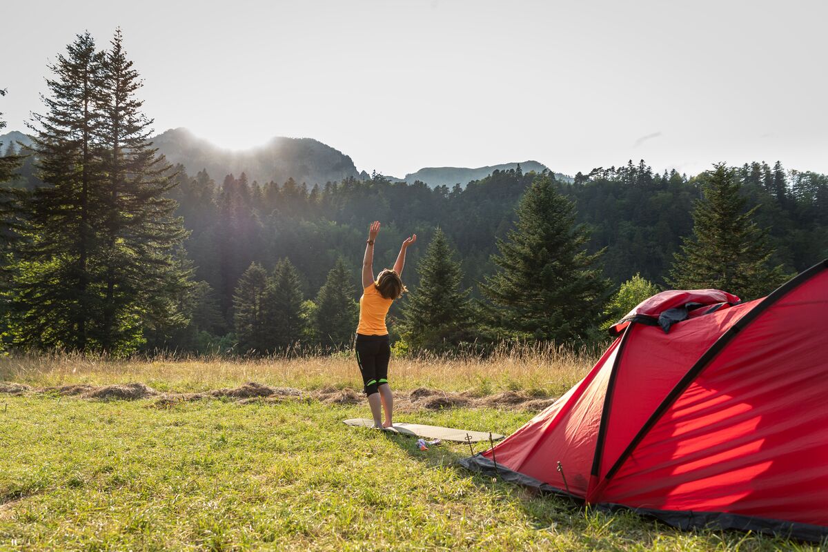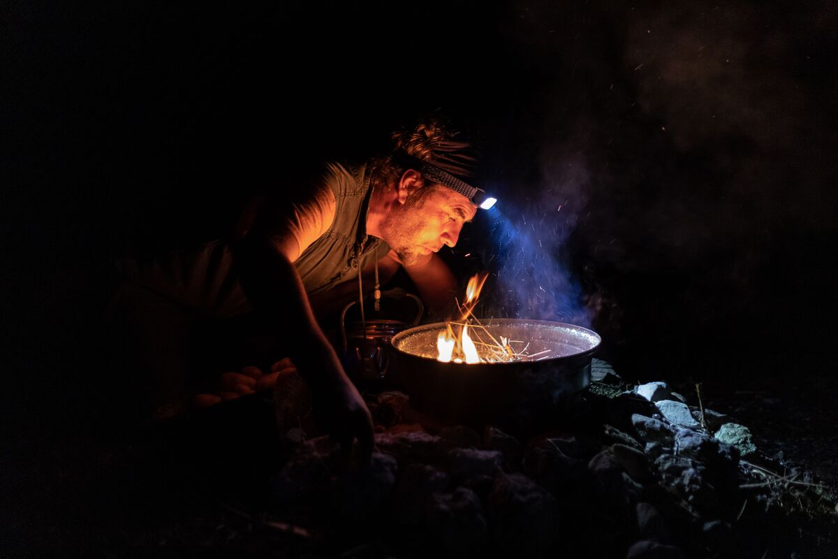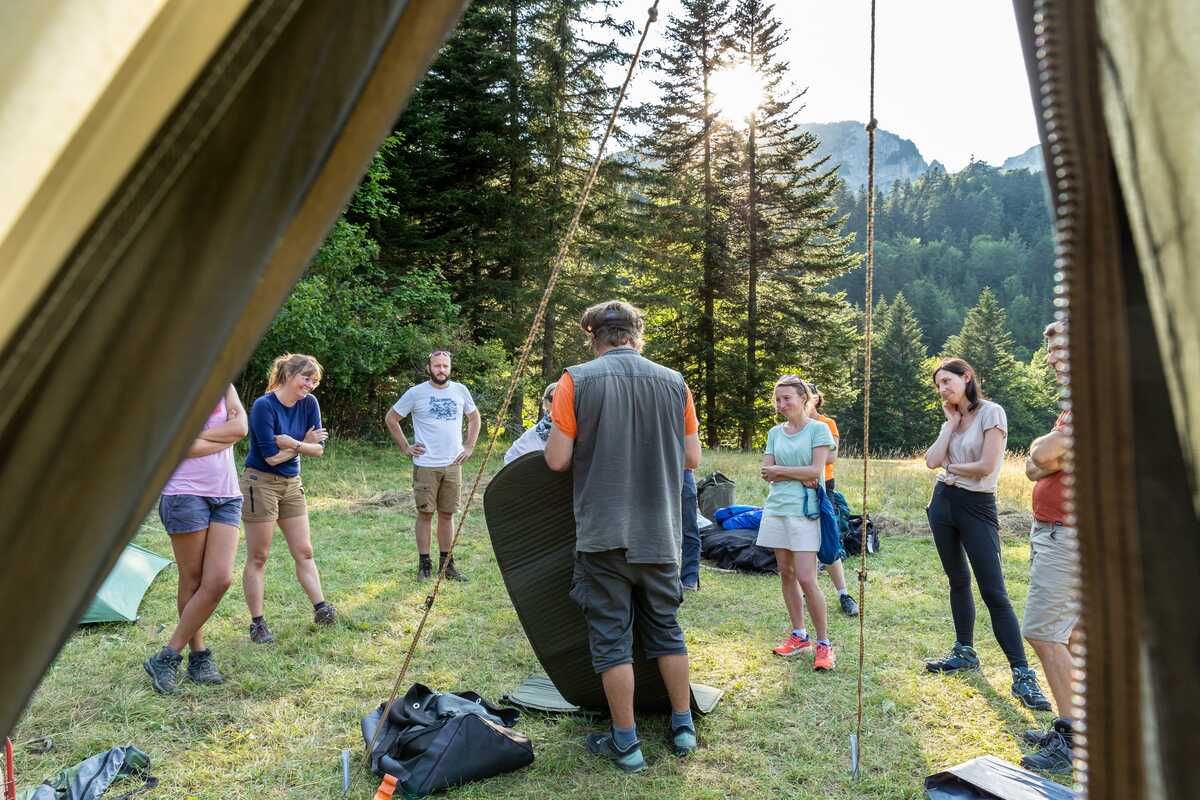 Pendant l’été (avril à octobre), le camp de base se situe dans une clairière en mode bivouac